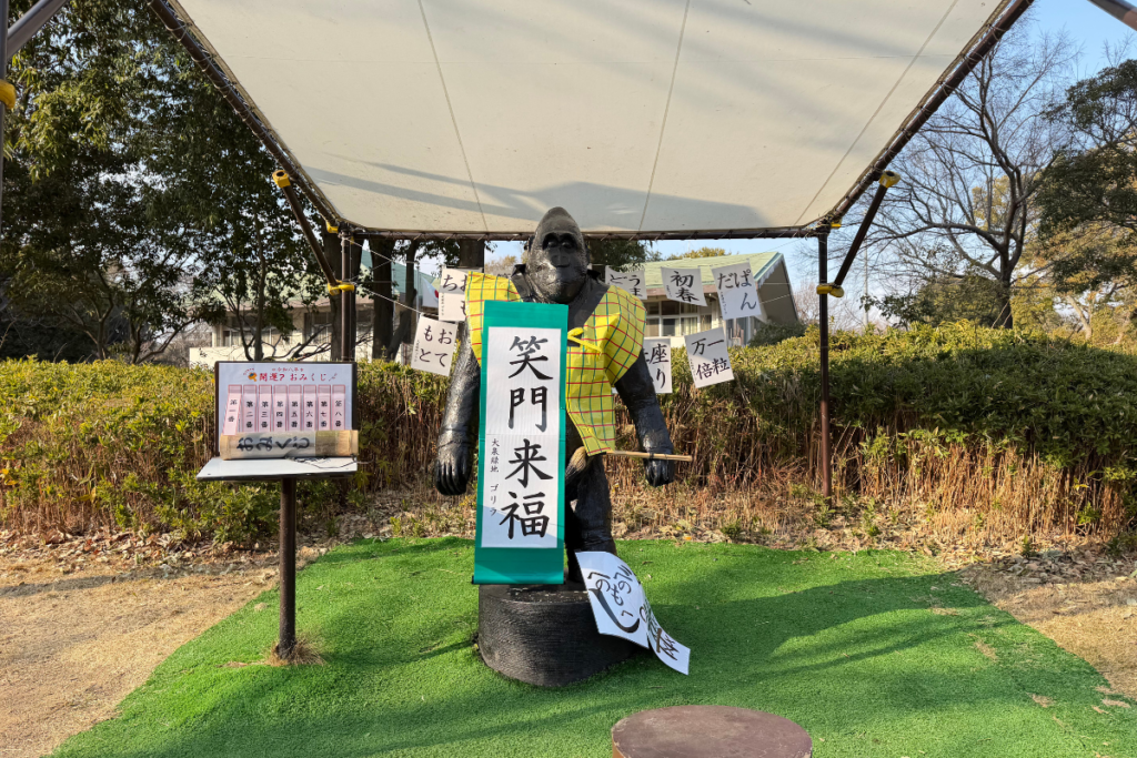 噴水の近くにはゴリラの像があり、季節ごとにお色直しをしていて可愛いです^^