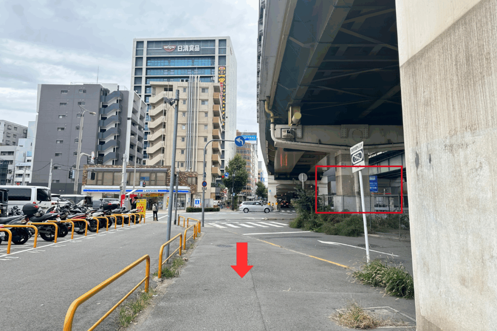 西中島南方駅から向かう場合は、2番出口を出てすぐ右の信号を渡り、ローソンを背中にしてもうひとつ信号を渡り、正面に進みます。