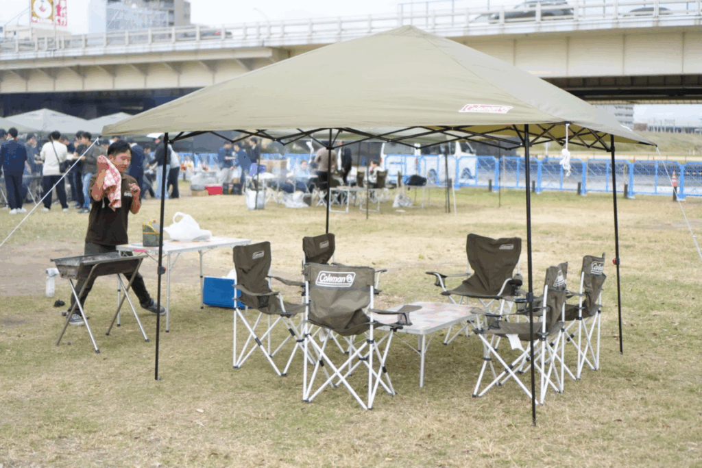 河川敷は地面が湿っていることも多いので、荷物置きに持っていく方が良さそう。