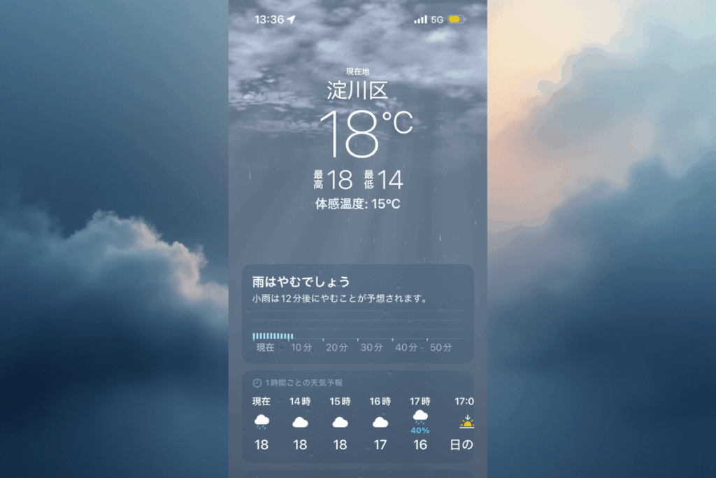 この日は11月初旬、最高気温は18度で、天気は曇り時々雨。