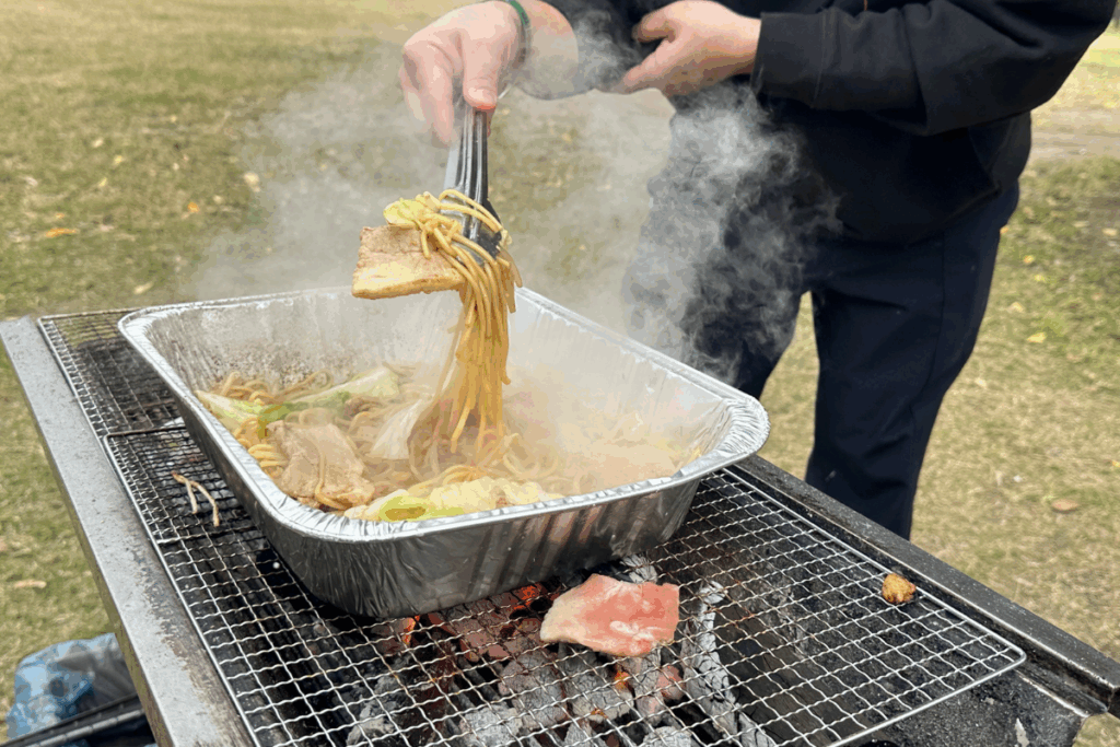 一番あたたかいお昼頃にBBQを開催しましたが、晴れ間があれば暖かい、曇っていたら少し寒い、という感じでした。