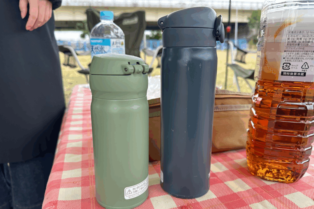 小さいほうの水筒は同じ方法で熱湯を入れ未開封のまま持ち帰ったんですが、なんと夜まで熱々の状態でした。