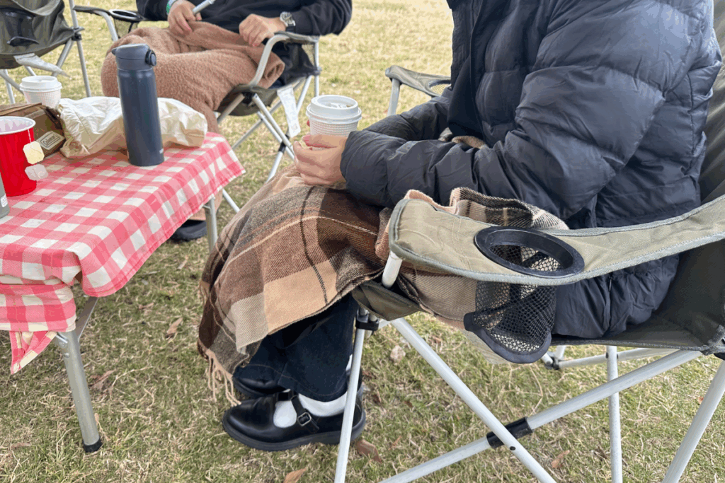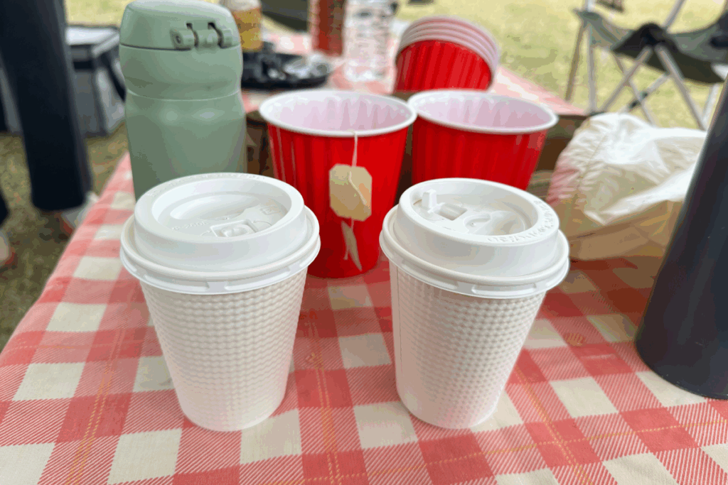 保温できるようにと蓋つきのカップを持参していたんですが、熱すぎて飲めないとのことで蓋を外す人も!